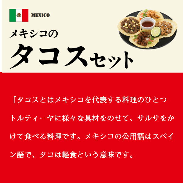 【商品説明】世界のコナモン シリーズ「タコス」 メキシコを代表する料理タコスが手軽に出来る粉とソースのセット。