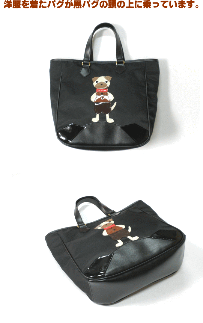 パグ柄 ビニールコーティング バック トート ファスナー付き 犬 グッズ 雑貨 柄 好き プレゼント モチーフ おもしろ